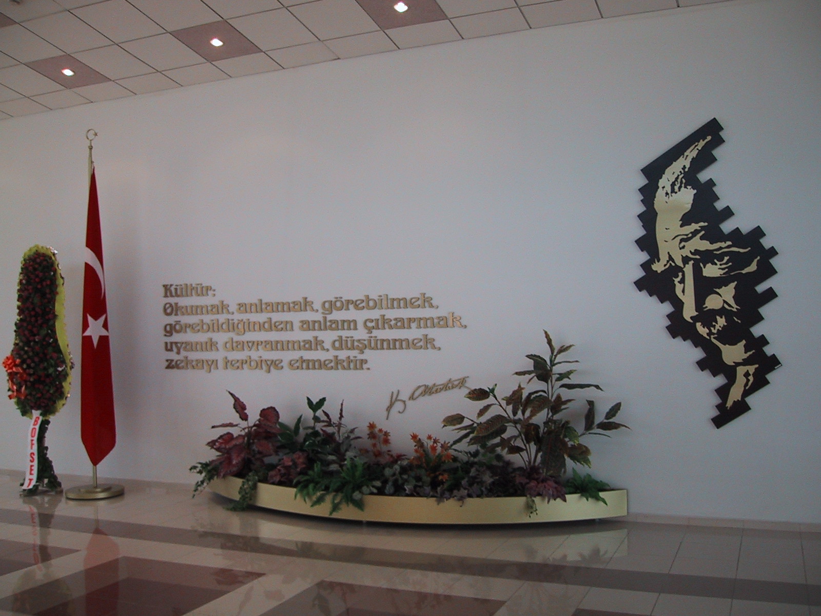 Kemalpaşa İlçe Emniyet Müdürlüğü'nün giriş salonunda, halihazırda granit taşından yapılandırılmış alana Atatürk köşesi tasarımı yapılmıştır. Pirinç metal alışım malzemelerden, Gazi Mustafa Kemal Atatürk'ün rölyefi metal kesim yapılarak konumlandırılmıştır ve geleceğimize yön veren sözü, yine pirinç metal alışım malzemeden harf kesimi yapılarak üretilmiştir.