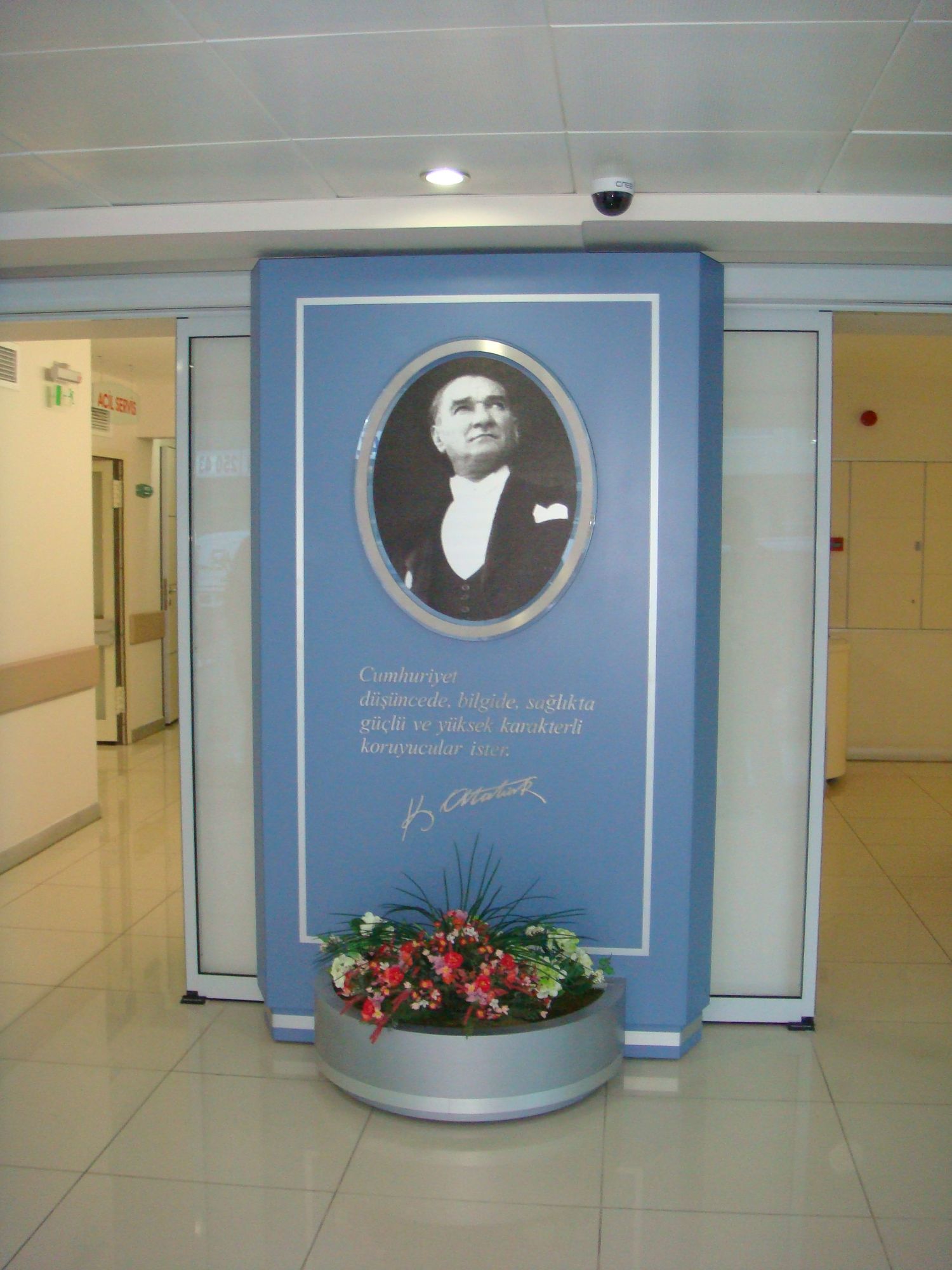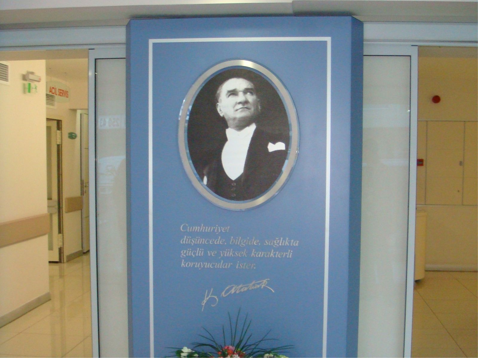 Megapol Hastanesi içinde bulunan Atatürk köşesi, alüminyum metal malzemeden oluşturulmuş pano şeklinde tasarlanmıştır. Gazi Mustafa Kemal Atatürk'ün fotoğrafı pano içene, alüminyum metal malzeme üzerine asit indirme tekniği ile işlenerek imal edilmiştir. Geleceğimize yön veren sözü, alüminyum metal malzemeden harf kesimi yapılarak üretimi tamamlanmıştır.