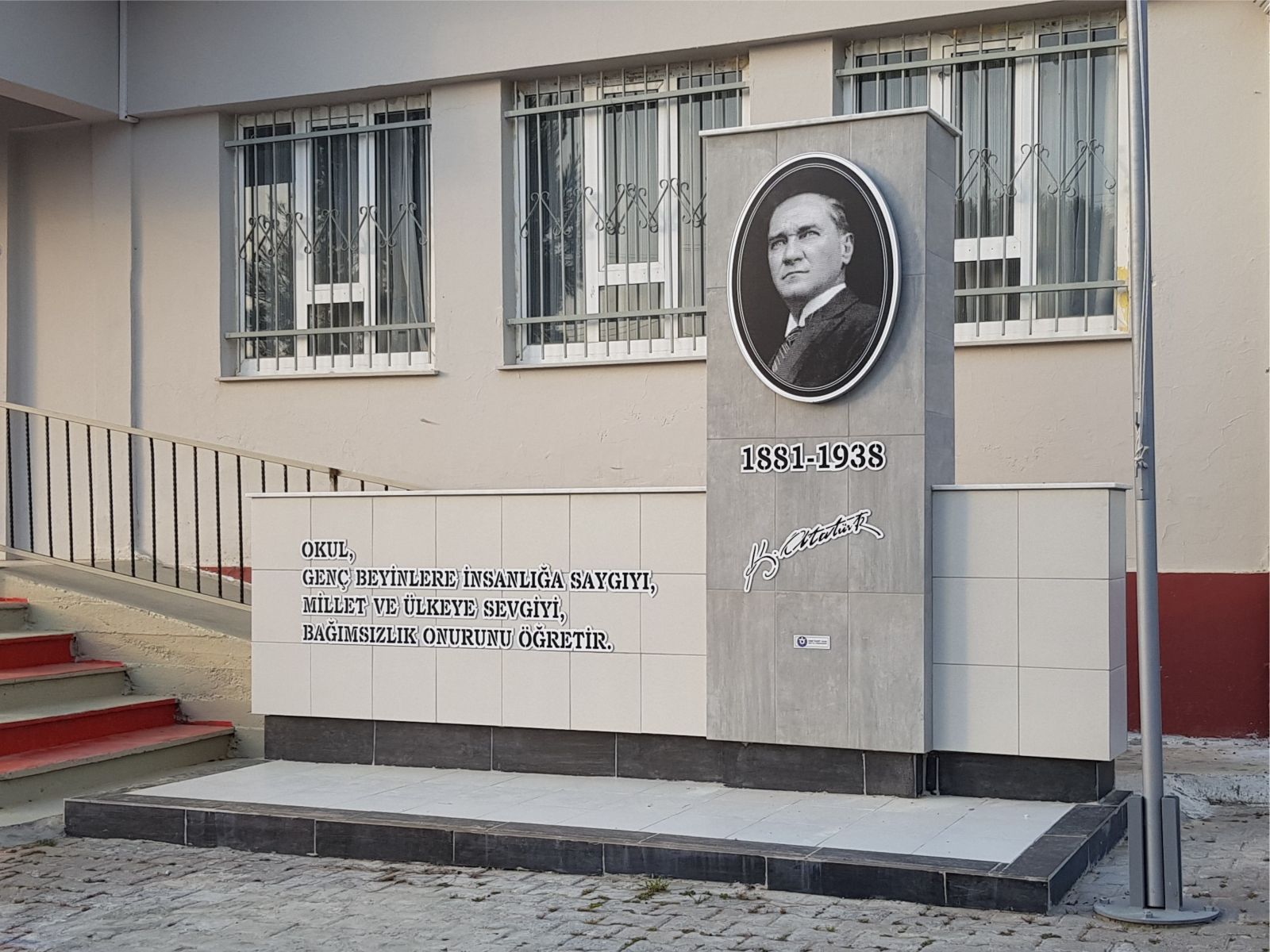 İzmir Seferihisar Tepecik Ortaokulunda uyguladığımız standart Atatürk Anıtı tasarımımız, İzmir'de bazı kamu kurumlarının, anaokul, ilkokul, ortaokul ve lise gibi okullara bağışta bulunduğu "Atatürk Anıtı ve Anı Köşesi Bağış Projesi" kapsamında yüklenicisi olduğumuz üretimimizdir. Tepecik Ortaokulu Atatürk Anıtı görseli bir örnektir.