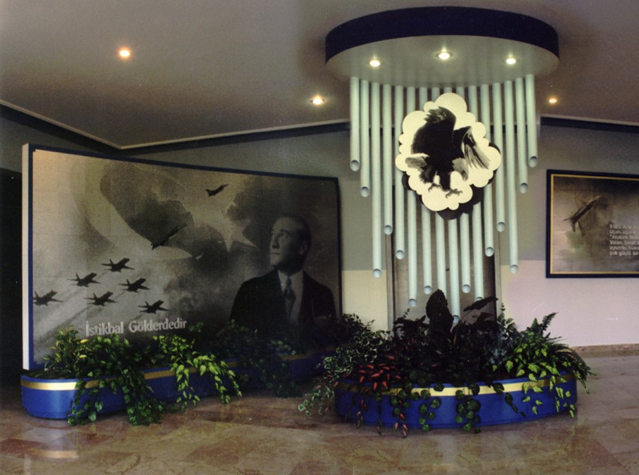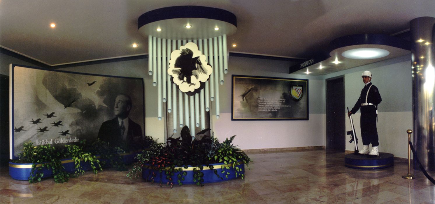 9 ncu Ana Jet Üs Komutanlığımızın içinde, Gazi Mustafa Kemal Atatürk'ün anısına ve havacılık hakkındaki geleceğimize yön veren sözlerini içerir, havacılık temalı tasarımlarımızla üretmiş olduğumuz tüm ürünlerimiz, havacılık ruhunu hissetirmek üzerine odaklanılarak tasarlanmıştır. Salon içinde bulunan ekranlarda Gazi Mustafa Kemal Atatürk'ün fotoğrafları, sözleri ve uçak fotoğrafları pirinç alışımlı metaller üzerine asit indirme tekniği ile işlenerek üretilmiştir.